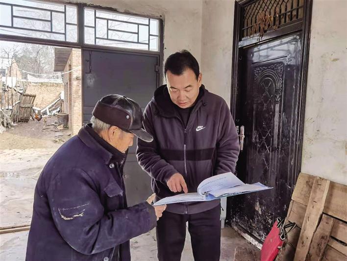 周锋(右)到贫困群众家中了解情况,宣传政策。陕报记者 穆骋摄