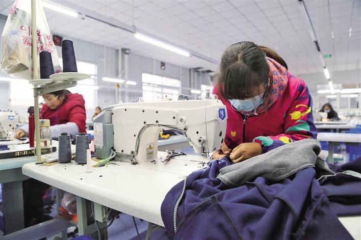 妇女在寨东村村集体企业——杨凌秀姿服饰科技有限公司务工。