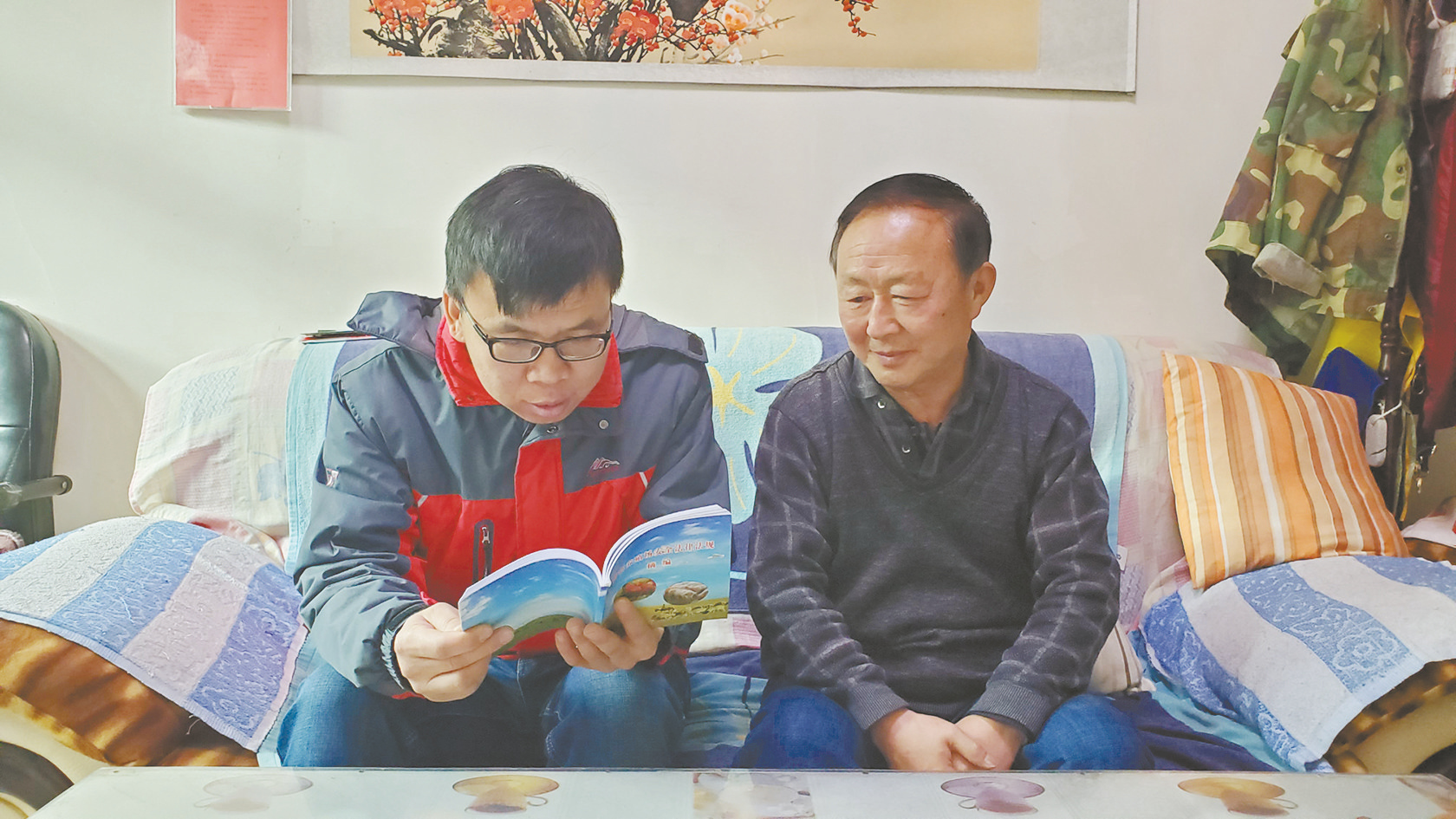 张延东(左)在群众家里宣传果树修剪技术。