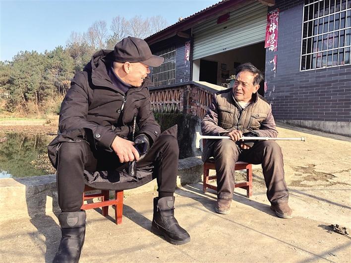 二〇二〇年十二月三十一日,南郑区牟家坝镇祖师殿村第一书记兼驻村工作队队长王韩钢(左)正在与贫困户交谈。