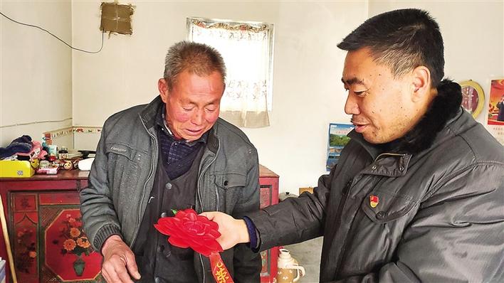 驻村第一书记张祥(右)走访脱贫户何世军。