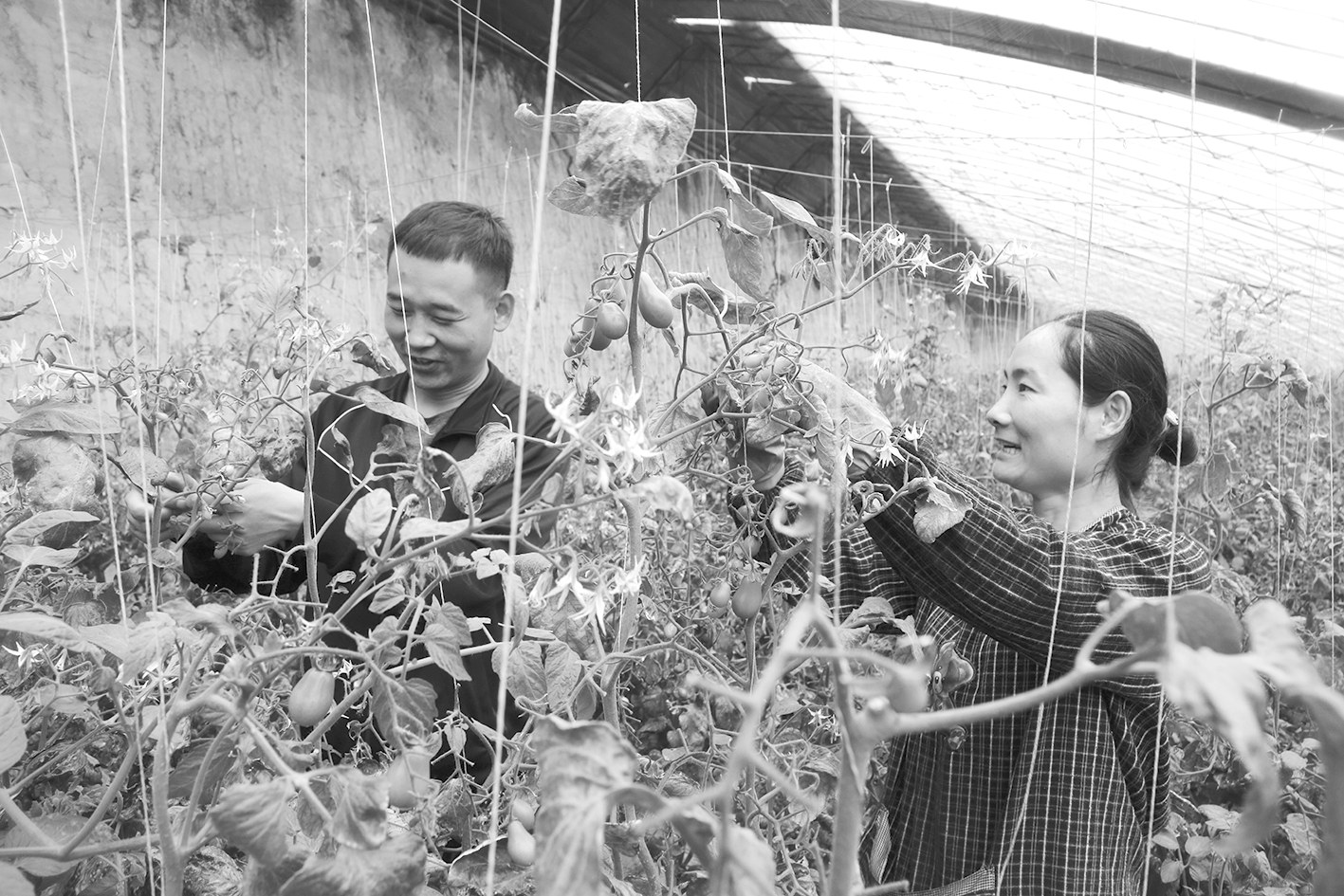 陈尚和妻子杨媚嵛采摘圣女果。