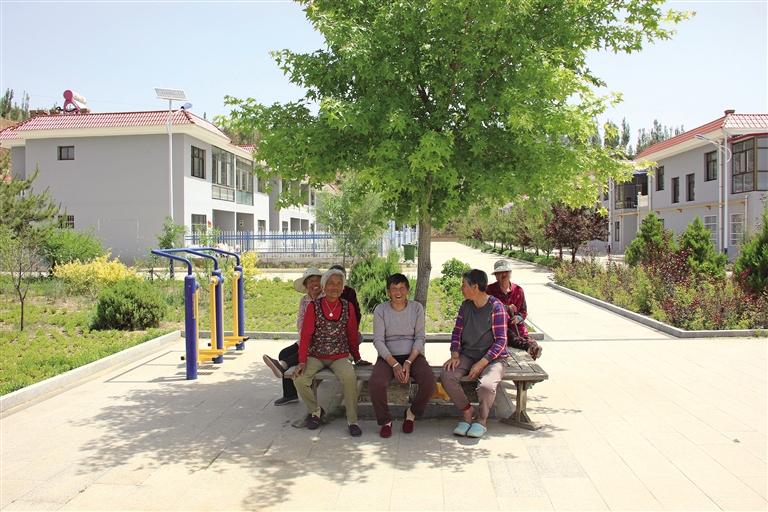 赵家峁村村民在村里的新农村住宅区休闲聊天。