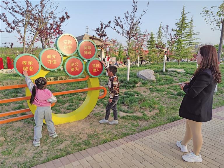 合阳县家风家训主题公园已经成为市民休闲娱乐和学习知识的理想场所。 陕报记者 杨小玲摄