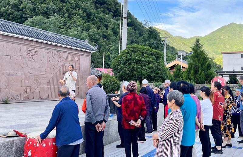 “我们青树村在苏陕协作的政策支持下,打造了集生态康养中心、特色陕南民俗和休闲垂钓园于一体的冷水鱼养殖产业园,还建成了占地百亩的十里鱼坊,这里即将成为一个乡村旅游‘新村庄’。大家平时要保持好整个程家川沿线的环境卫生,把传统的农耕文化保护好,更要发挥好自身特长,做好旅游接待工作,让外地来旅游的客人感受到我们的发展特色、淳朴民风和热情好客⋯⋯”乡音党课上,青树村联村干部王斌细致地和村民讨论村子的发展。