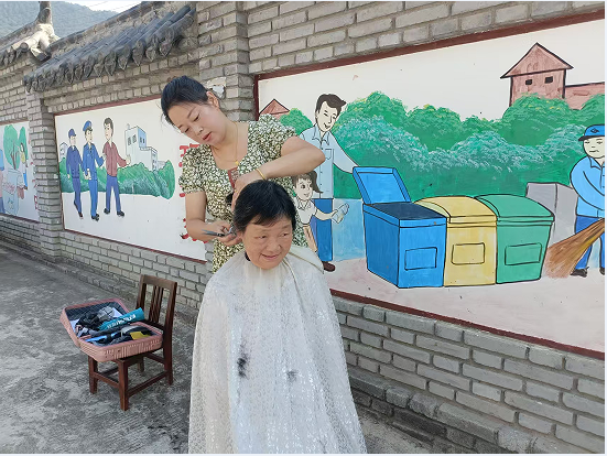 一大早,漩滩村志愿服务队就穿梭在村里留守老人家中,剪头发、刮胡子,忙得不可开交。“昨天张叔就给我打电话,说头发长了能不能帮他剪剪,所以今天我们就组织志愿队来了。”漩滩村文书张敬梅说道。