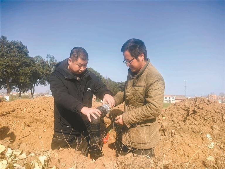 2025年12月10日,谭银波(左)和谭博在铺设输水管(资料照片)。