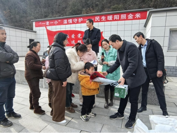 2月5日,柞水县金米村党群服务中心广场上暖意涌动。由县委组织部、县委党校联合县民政局组织的“一老一小、温情守护”主题关爱服务活动在此温情展开。活动通过集中慰问、先进表彰、政策互动、入户走访、干群恳谈等多种形式,为全村150余名生活困难老人和儿童送上冬日的温暖与关怀。