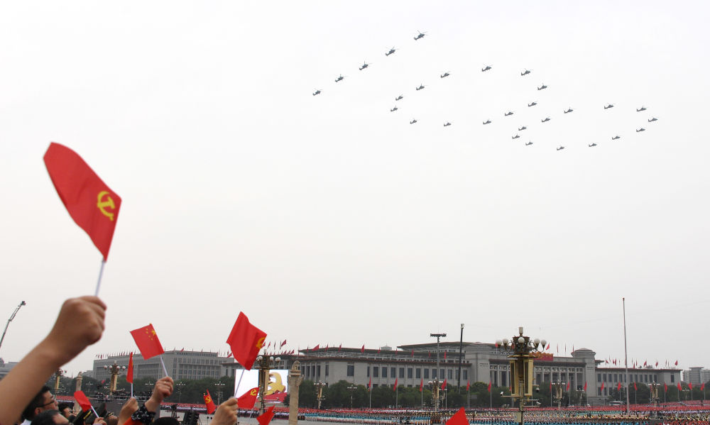 7月1日上午,庆祝中国共产党成立100周年大会在北京天安门广场隆重举行。这是飞行庆祝表演。新华社记者 李欣 摄