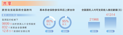 打赢脱贫攻坚战,实现了小康这个中华民族的千年梦想;建成世界上规模最大的教育体系、社会保障体系、医疗卫生体系……这10年,我们在共建共享发展中有了更多获得感。