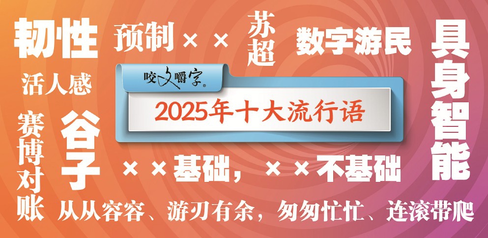 临近岁末,年度热词盘点成焦点。昨天,由上海《咬文嚼字》评选出的“2025年十大流行语”在沪发布,“韧性”“具身智能”“苏超”“赛博对账”“数字游民”“谷子”“预制××”“活人感”“××基础,××不基础”“从从容容、游刃有余,匆匆忙忙、连滚带爬”等入选。