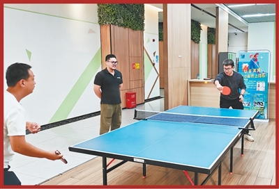 租客在广东深圳华丰美寓内打乒乓球。华丰美寓供图