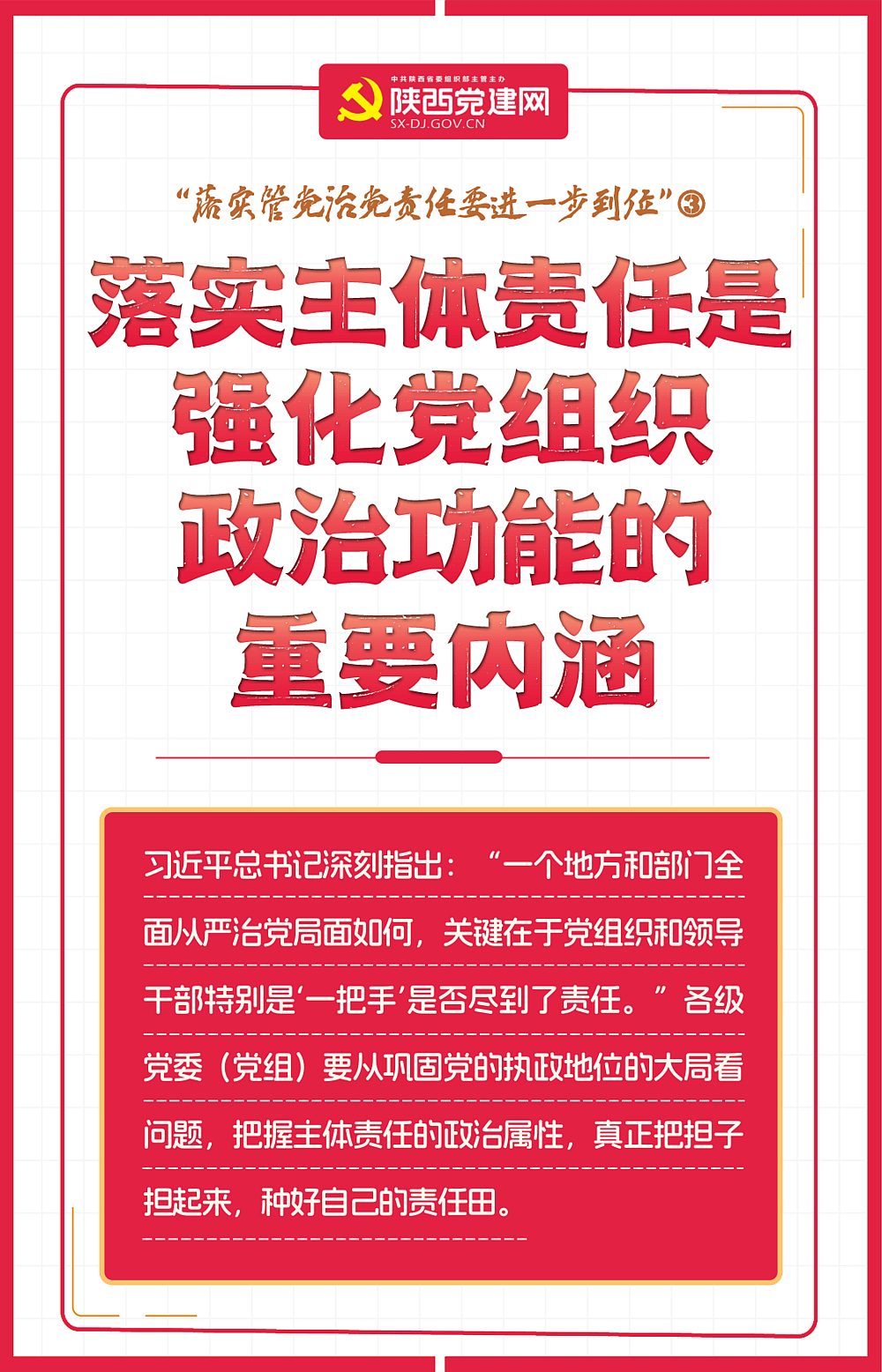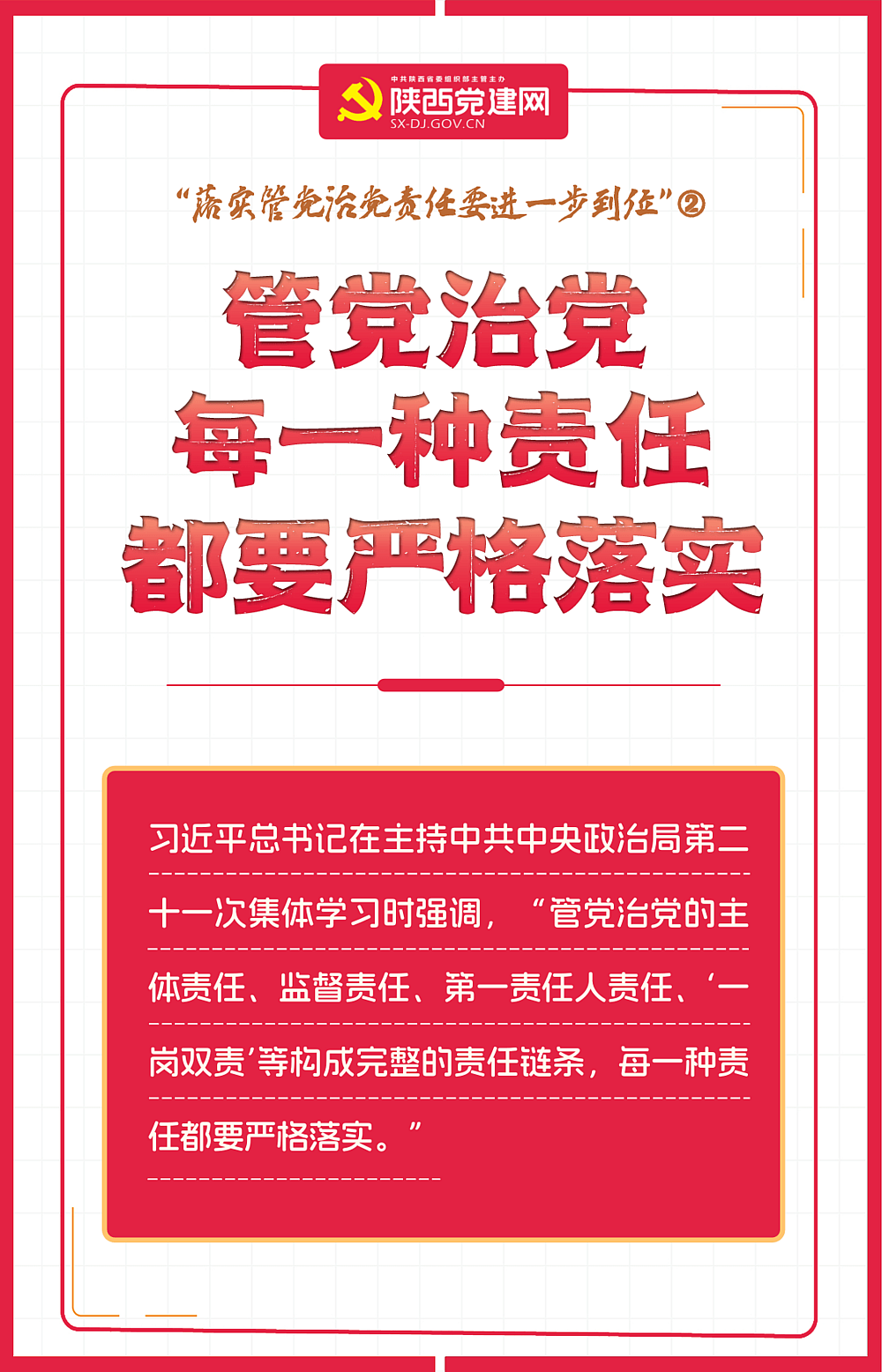 新征程上纵深推进全面从严治党,要在明确责任上再强调、在压实责任上再加力,进一步推动各级党组织和广大党员干部把责任落实到位。
